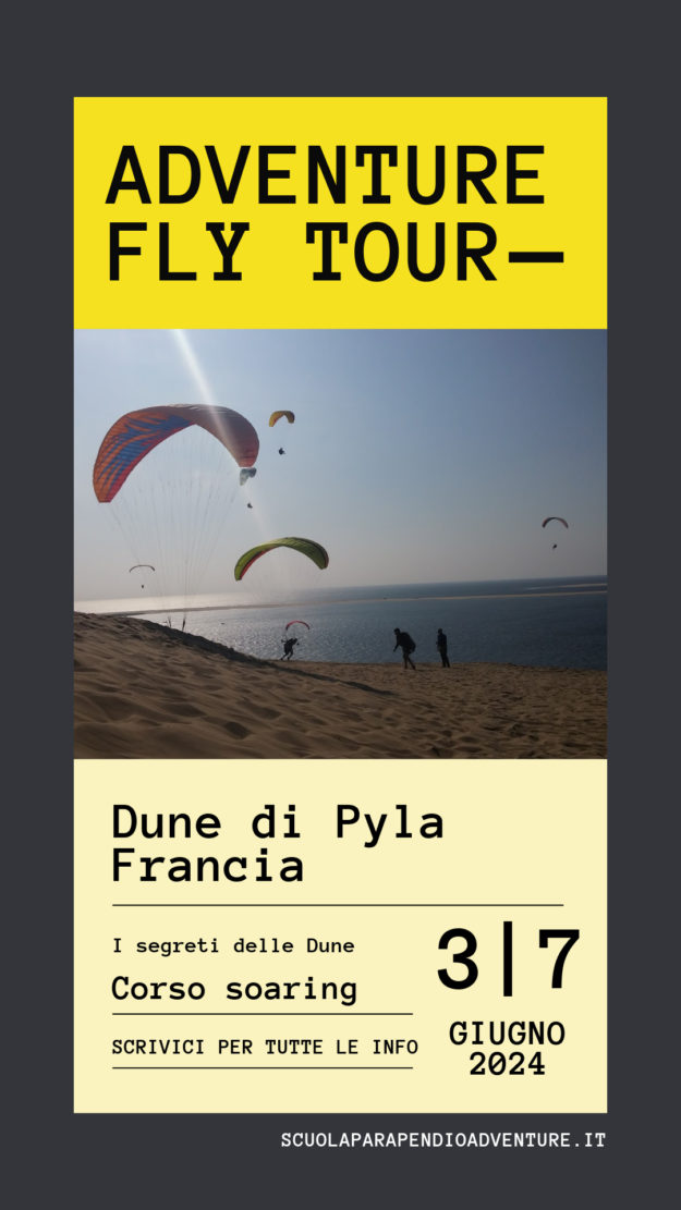 UNA SETTIMANA DI PRATICA E VOLO IN UNA DELLE LOCATION PIù BELLE D’ITALIA! Dal 28 settembre al 5 Ottobre unisci alla Scuola Adventure Parapendio per un tour in centro Italia in una delle location per il volo più belle D’Italia: la piana di Castelluccio di Norcia. Una settimana di Scuola per imparare a gestire la…